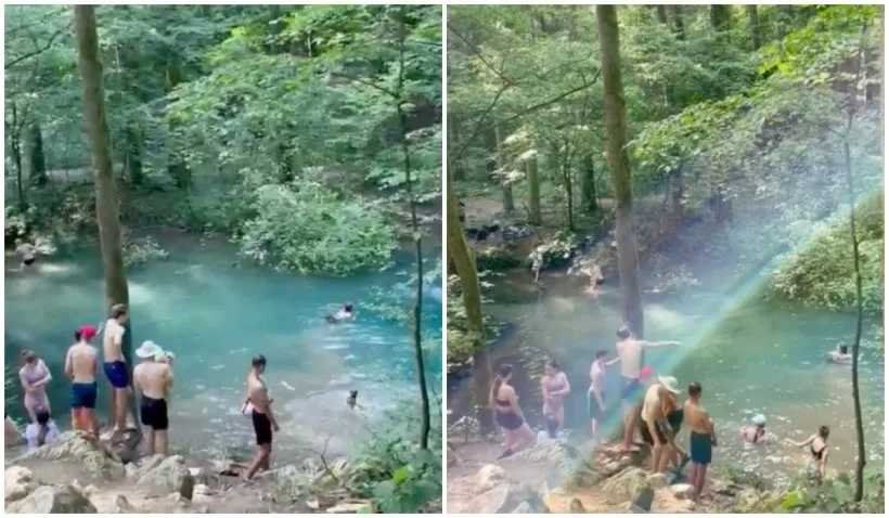 Turiștii au făcut baie în apele lacului Ochiul Beiului din Parcul Natural Cheile Nerei- Beușnița, în weekend, riscând amenzi.