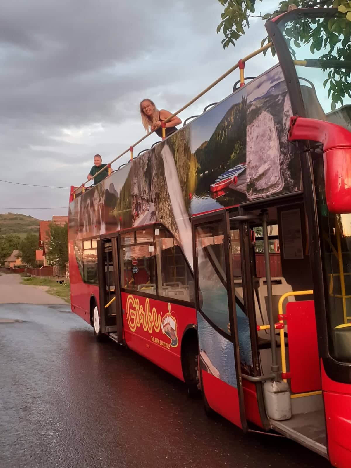 În localitatea Lupeni, am surprins acest autobuz decapotat, cu etaj, plin cu turiști, în timp ce se îndrepta spre muntele Gordon, la statuia ”Inima lui Iisus”. Străinii spun că se reîntorc de mai multe ori pe an, pentru că le place peisajul, oamenii, mâncarea și aerul curat.