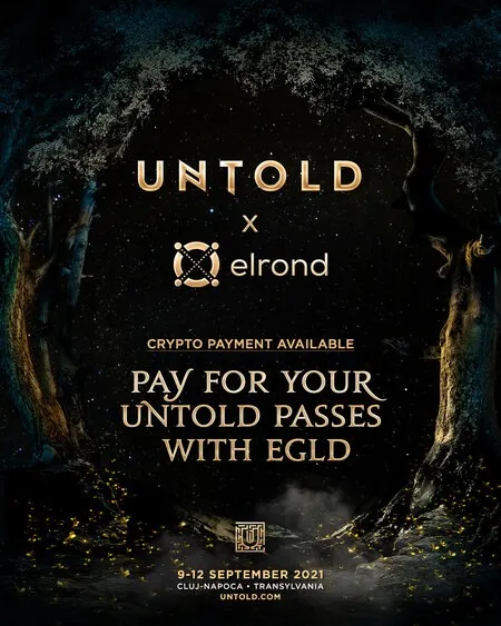 Mega-festivalul de renume internațional UNTOLD, cel mai mare din Europa în 2021, și Elrond Network, al doilea unicorn românesc care dezvoltă tehnologie blockchain la scara internetului, anunță că biletele pentru Untold 2021 pot fi achiziționate folosind criptomoneda EGLD.