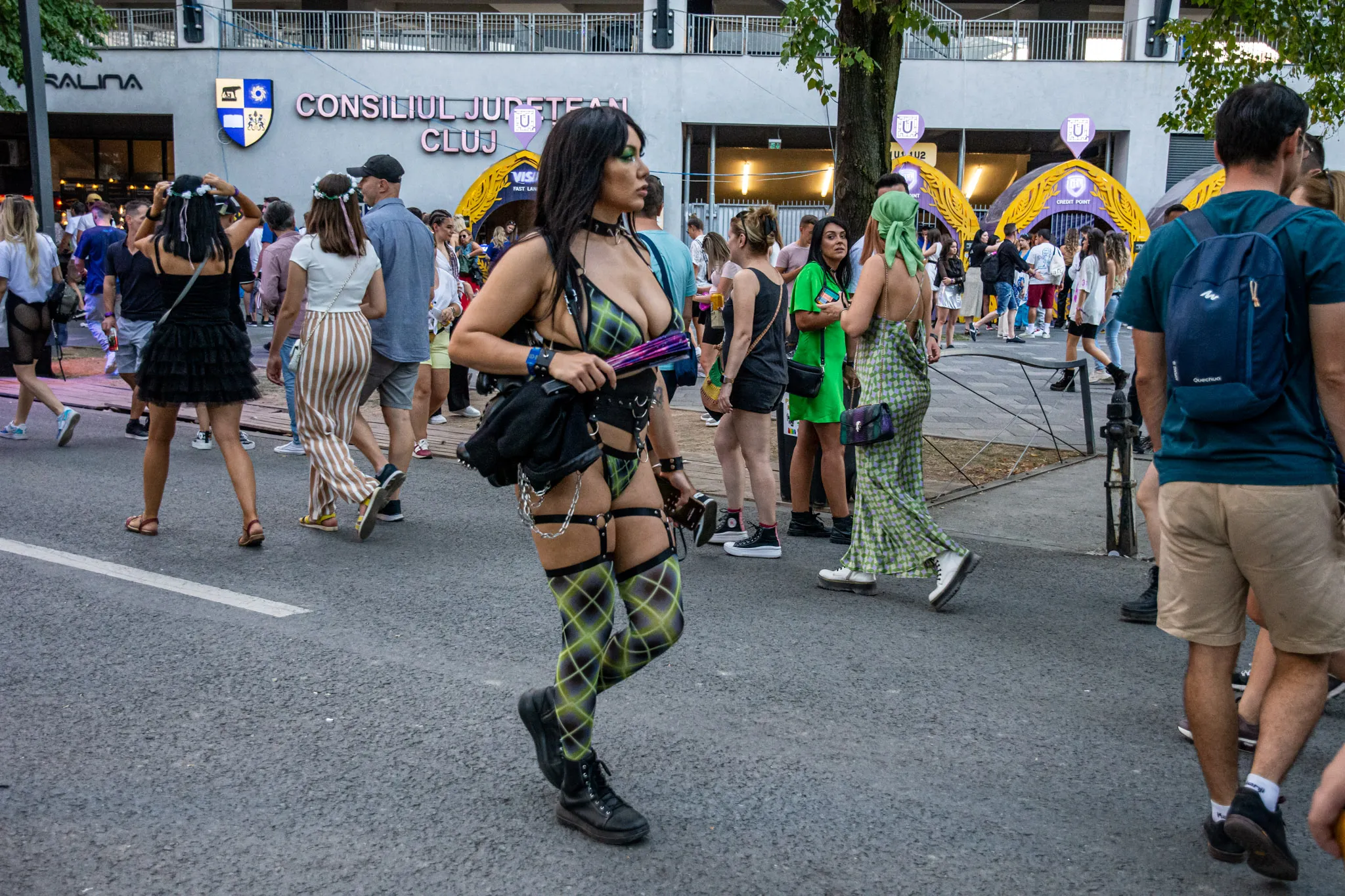 Festivalul Untold 2022 este tot mai exploziv, iar festivalierii se îmbracă tot mai îndrăzneț. O tânără a întors toate privirile vineri, în a doua zi de festival, iar fotografii din festival au imortalizat momentul.