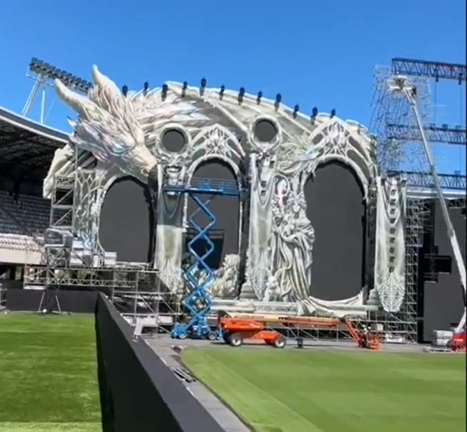 Montajul acestei capodopere vizuale este un proiect de amploare, implicând sute de specialiști din diverse colțuri ale lumii, sub coordonarea a șase ingineri brazilieni care au avut un rol central în organizarea festivalurilor de la Rio. Aceștia au fost cei care au gestionat montarea scenei, utilizând cea mai mare platformă foarfecă din Europa pentru a ridica și asambla structurile gigantice.