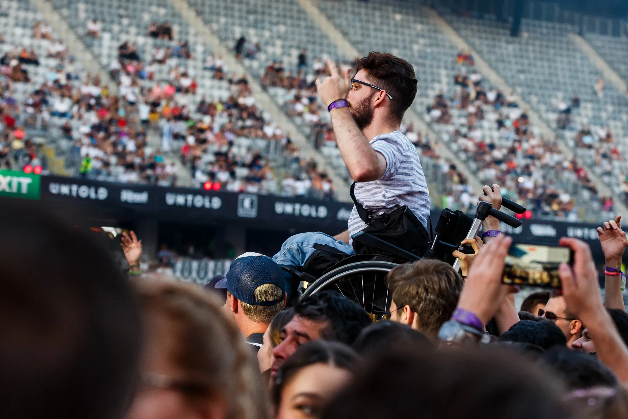 Tânăr în scaun cu rotile, ridicat deasupra mulțimii la Untold - FOTO