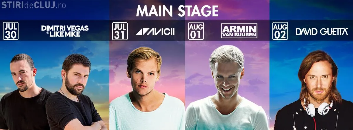 Astfel, la festivalul desfășurat la Cluj-Napoca în perioada 30 iulie-2 august, vor concerta artiști precum AVICII, ARMIN van BUUREN, DAVID GUETTA, DIMITRI VEGAS & LIKE MIKE, WU-TANG CLAN, DJ Premier, Tinie Tempah sau Jeru the Damaja.