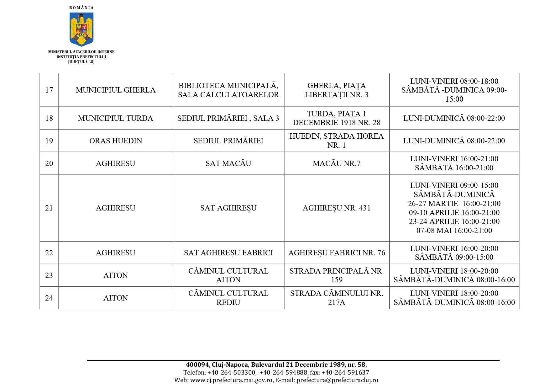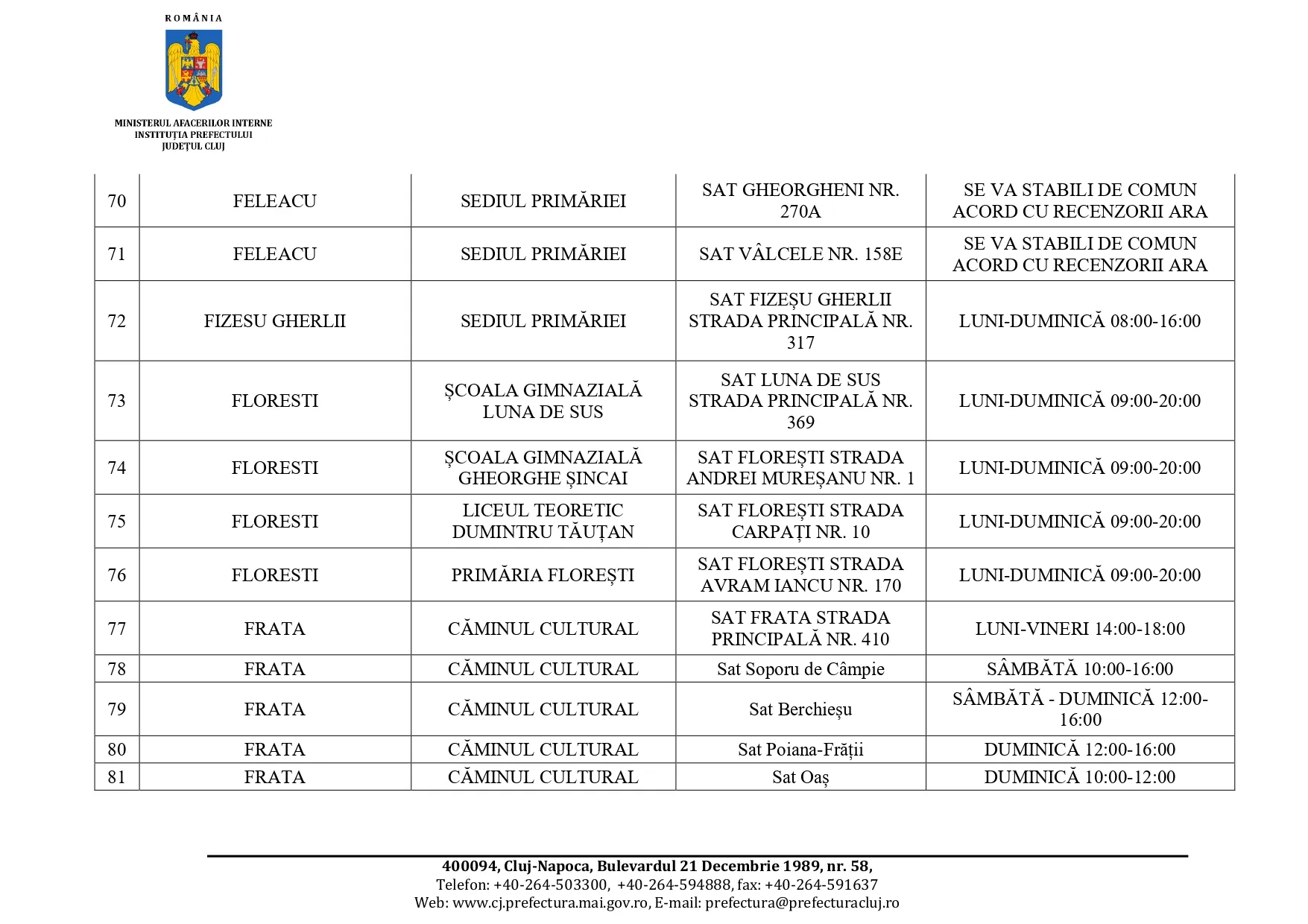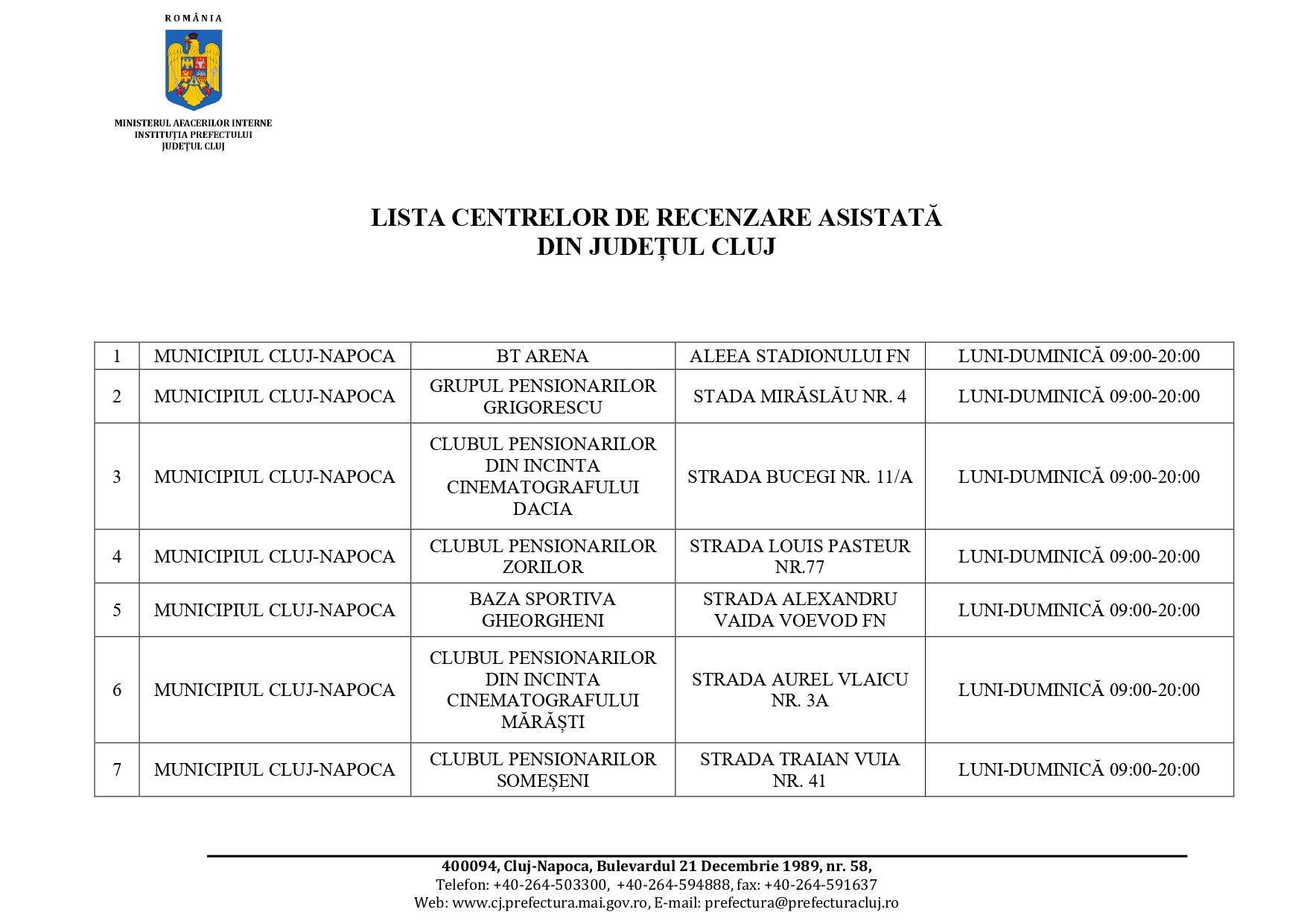 Lista locațiilor pentru autorecenzare asistată și programul de lucru al recenzorilor ARA din județul Cluj, poate fi consultată aici: