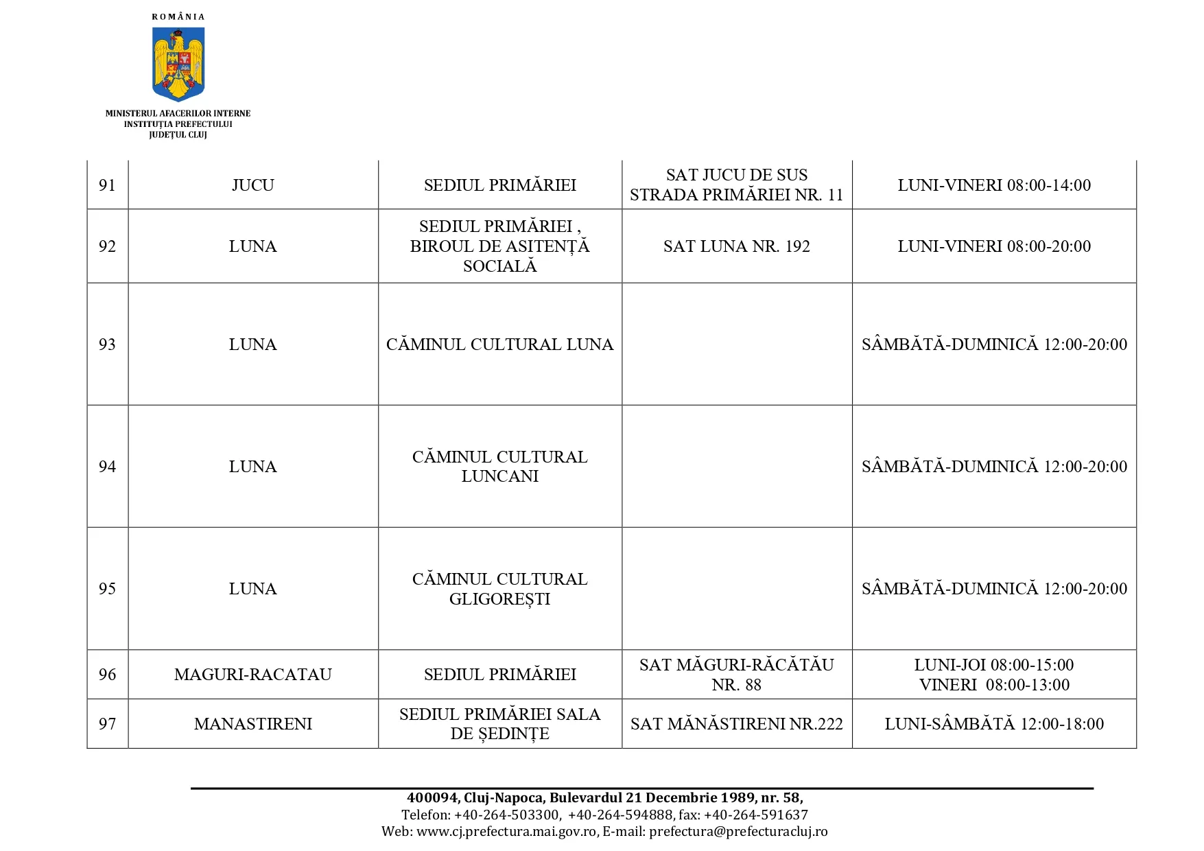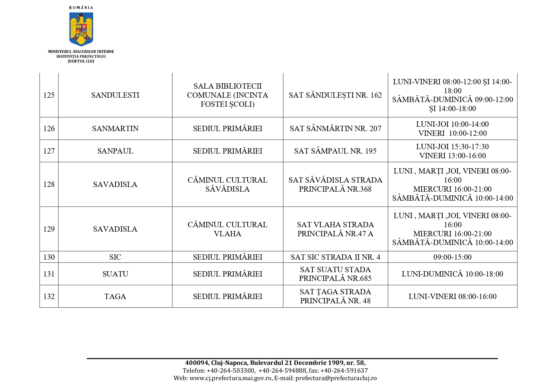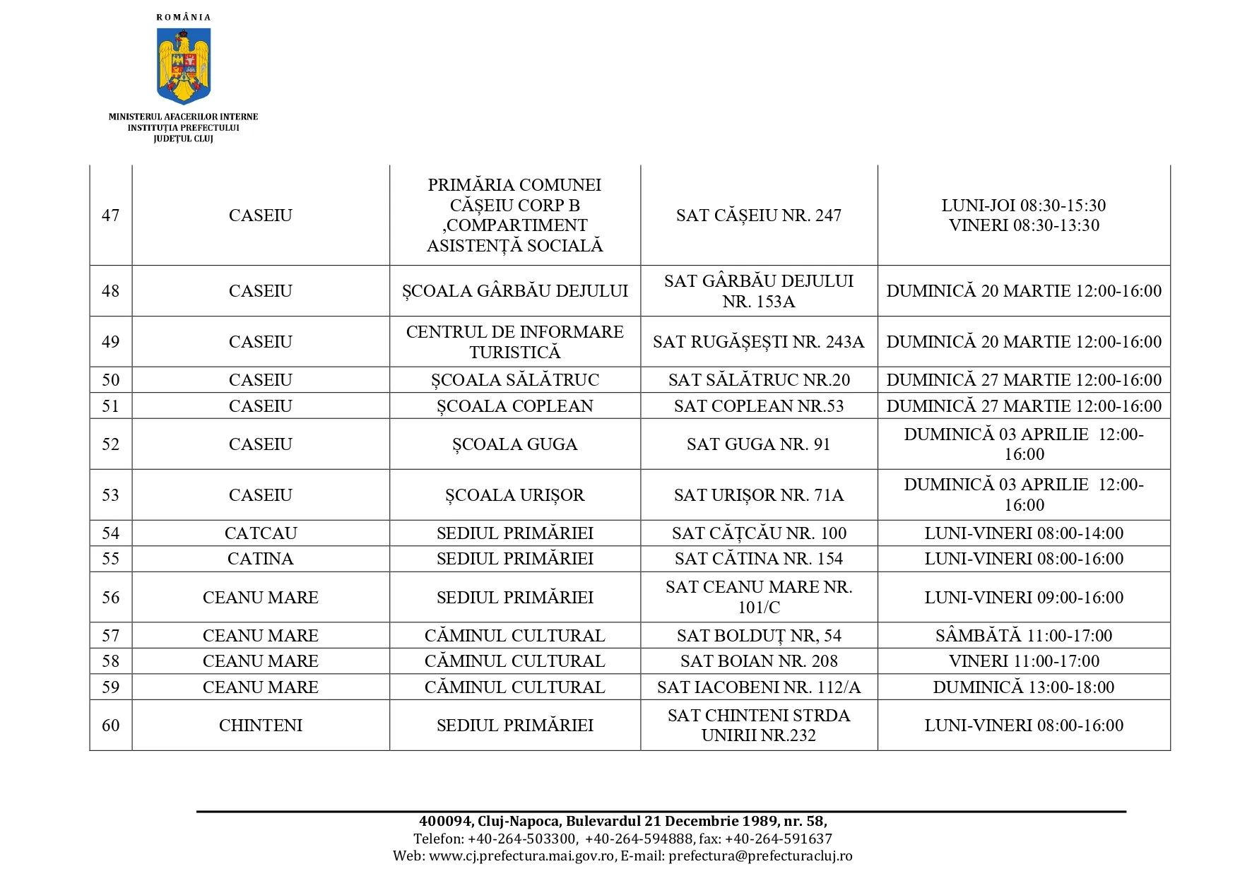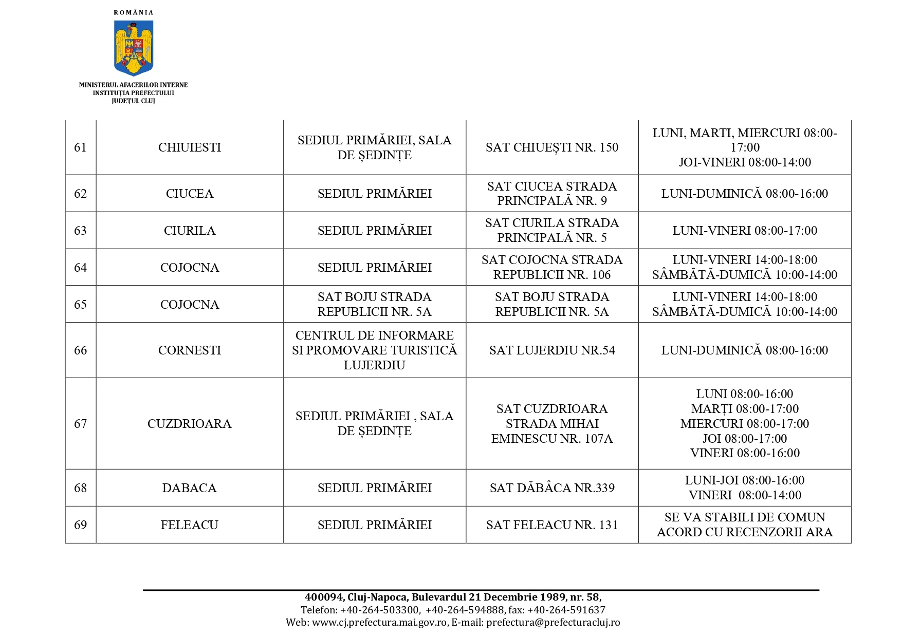 Lista locațiilor pentru autorecenzare asistată și programul de lucru al recenzorilor ARA din județul Cluj, poate fi consultată aici: