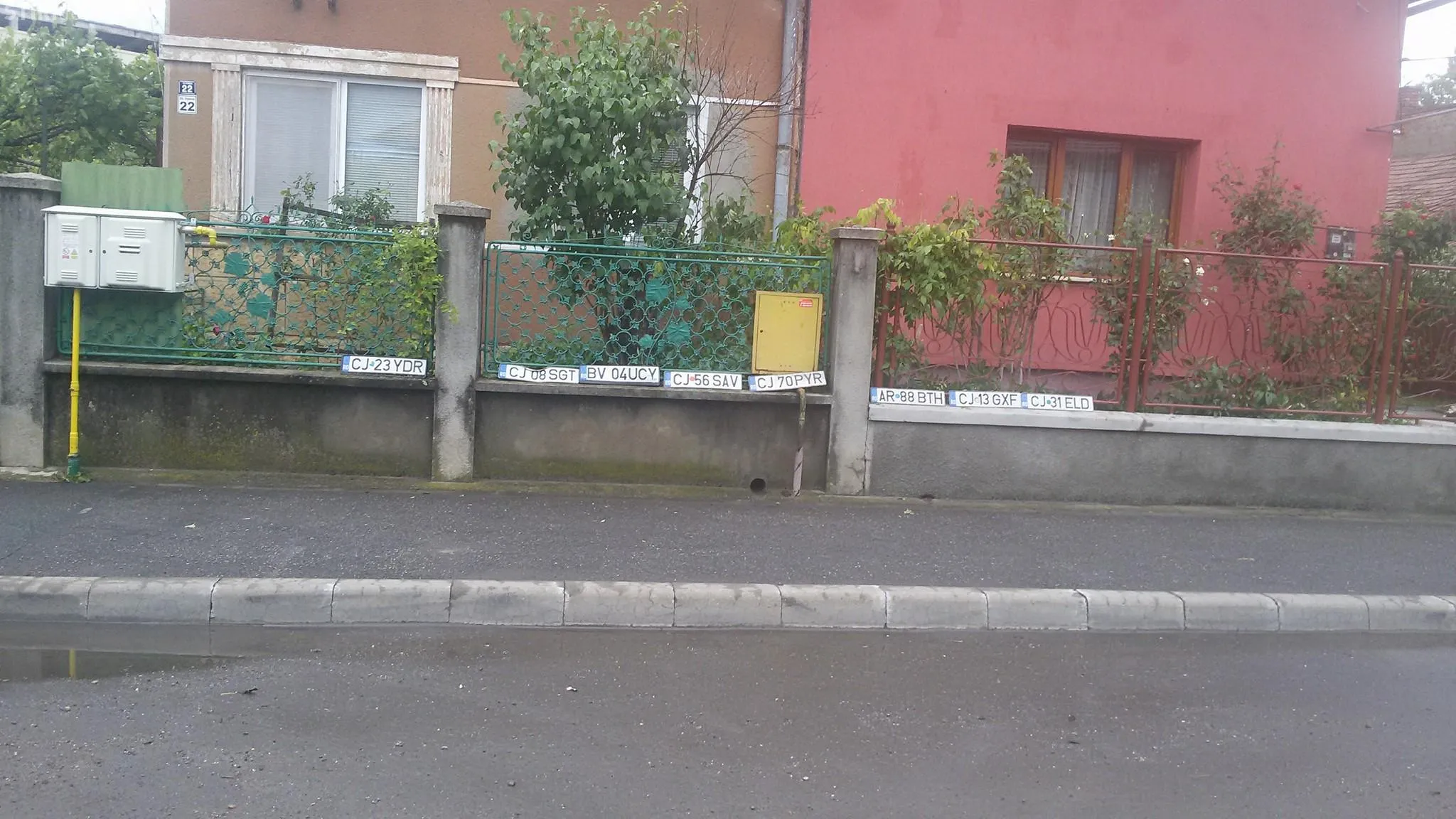 Pe strada Timișoarei și pe strada Vrancea, clujenii au adunat plăcuțele găsite în urma furtunii de marți și îi așteaptă pe șoferi să le recupereze.