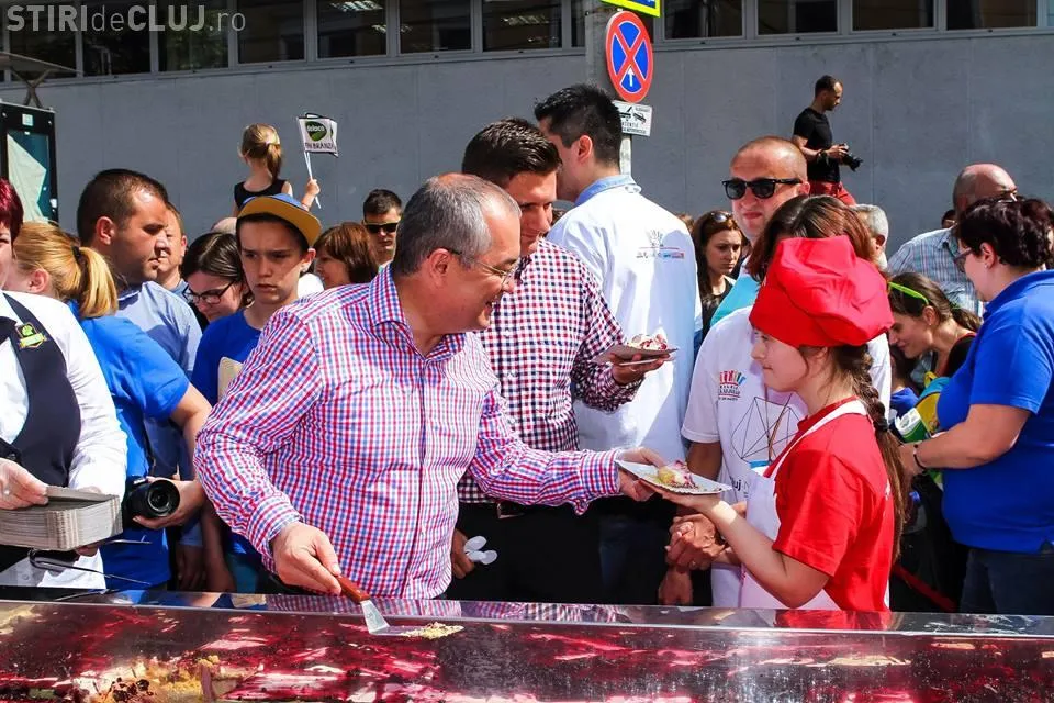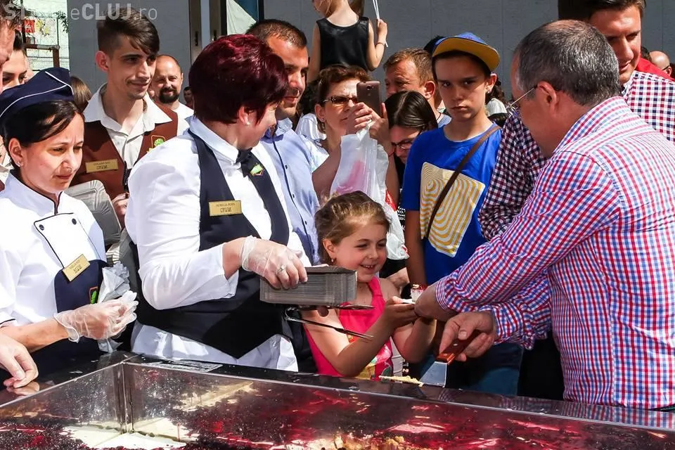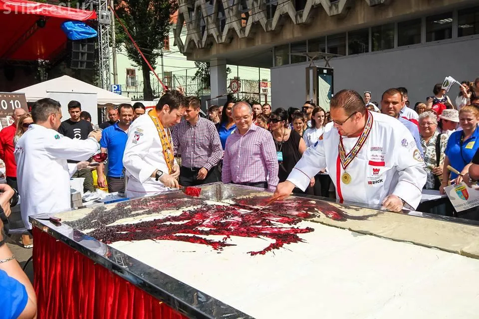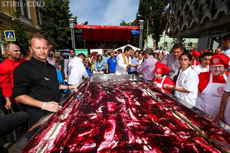 ”După ce elevii clujeni au stabilit un record impresionant în prima zi a Zilelor Clujului 2015, duminică, 24 mai, un nou record marchează finalul Festivalului Culinar Internațional - cel mai mare ”cheesecake” din țară. Prăjitura cu brânză a fost împărțită participanților de echipa Memo 10 și partenerii evenimentului”, a declarat primarul Emil Boc.