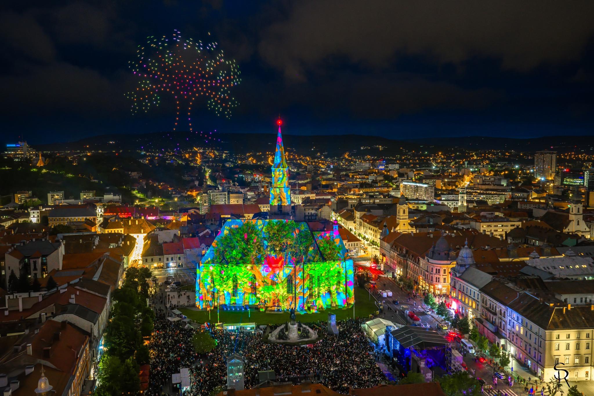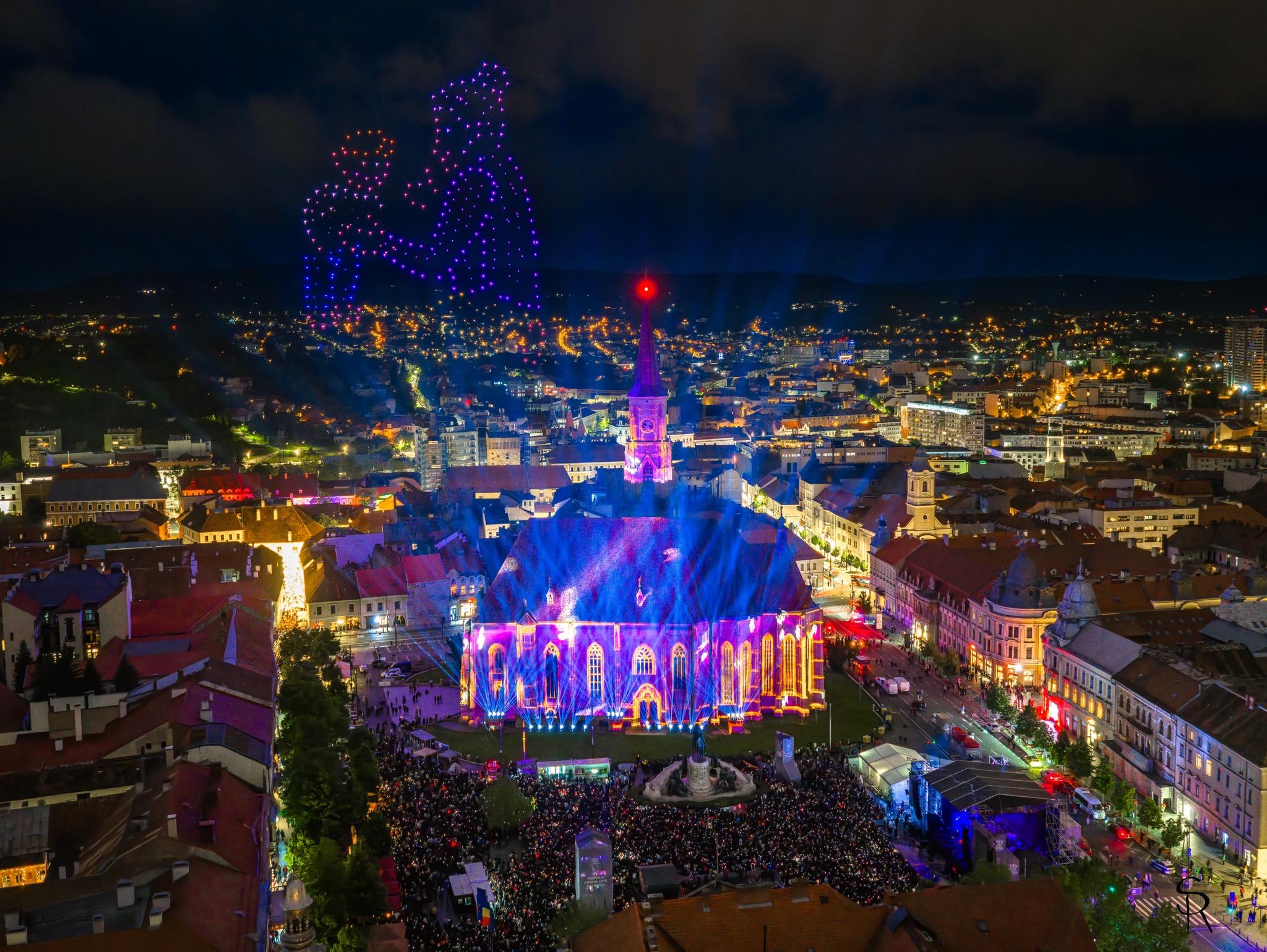 Spectacol-record cu 400 de drone la Zilele Clujului. Cele mai spectaculoase imagini realizate cu drona