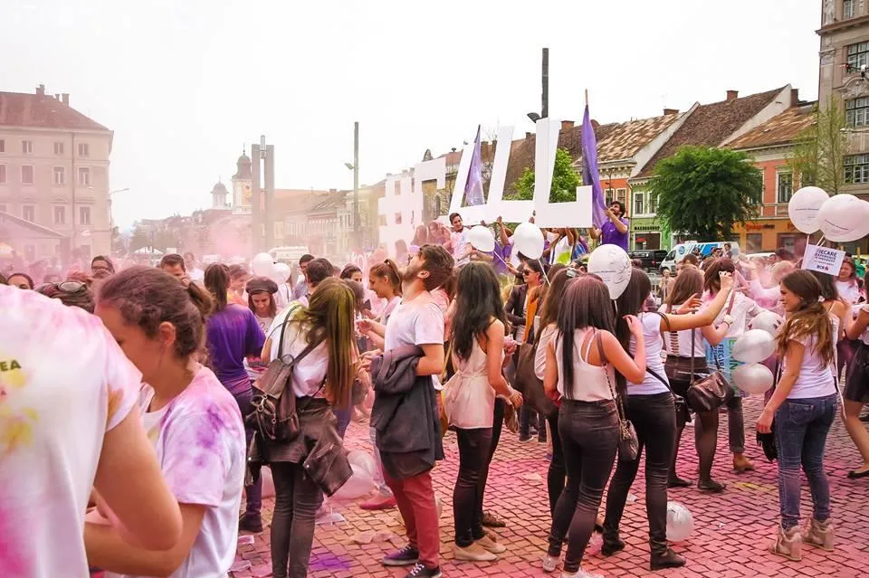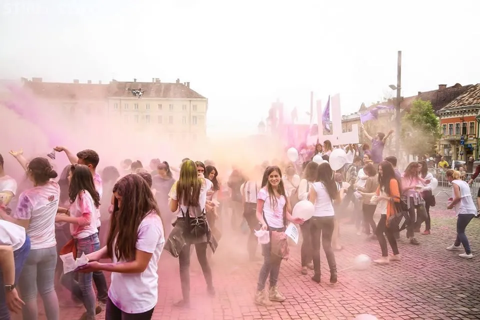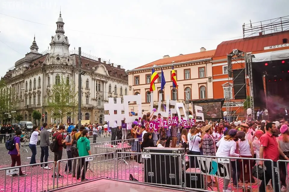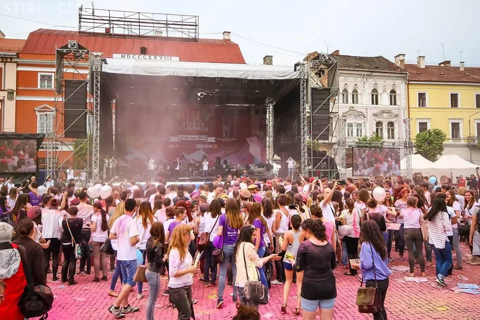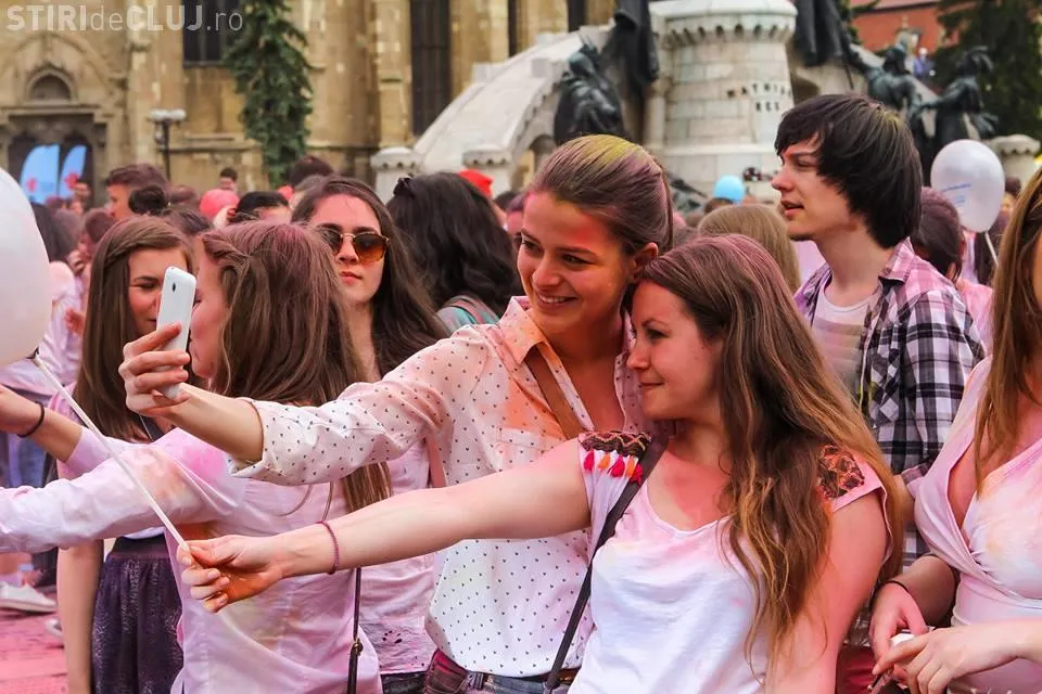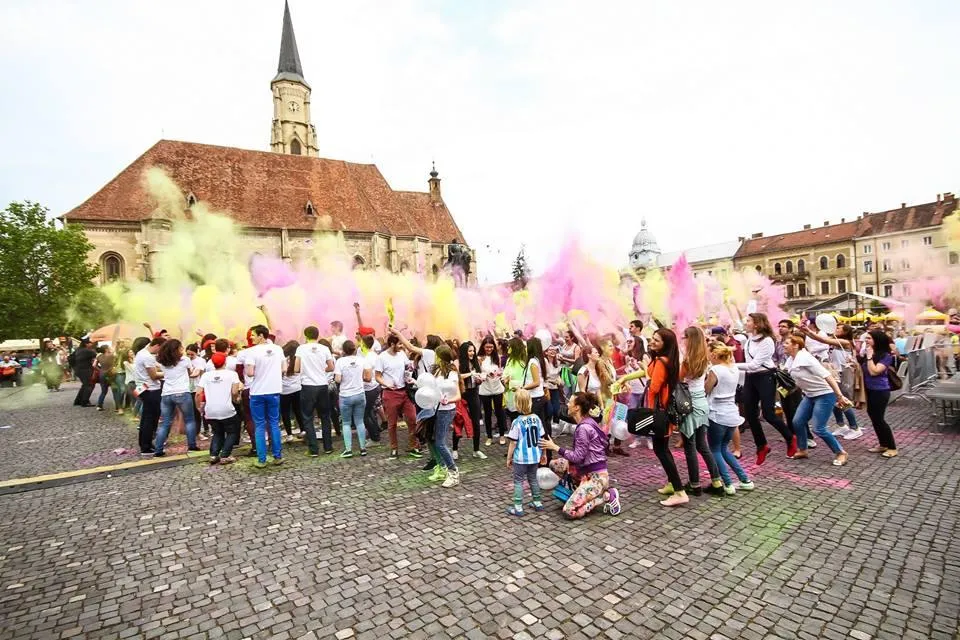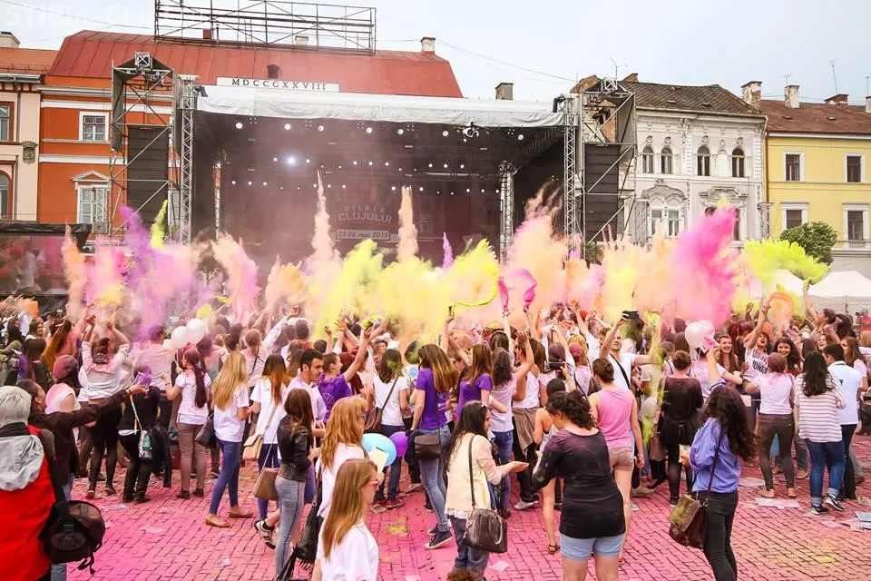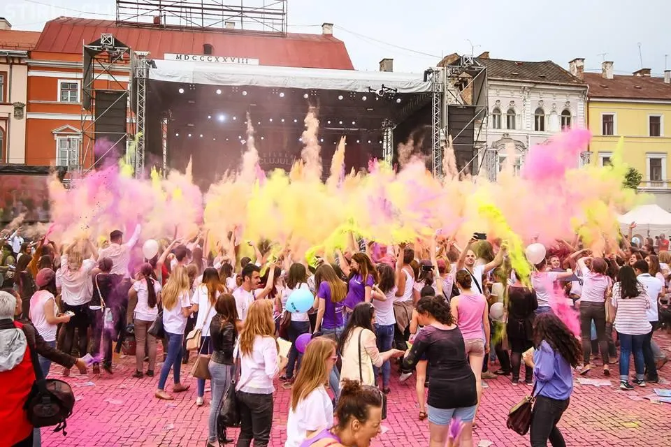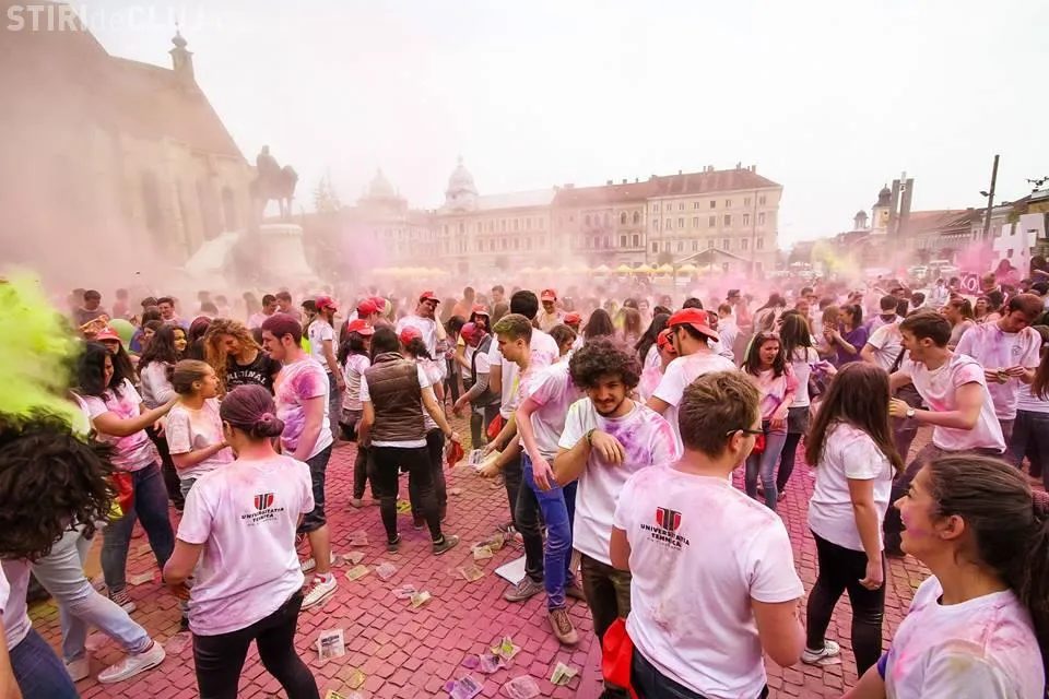 ZILELE CLUJULUI: Bătaie cu culori în centrul Clujului - FOTO